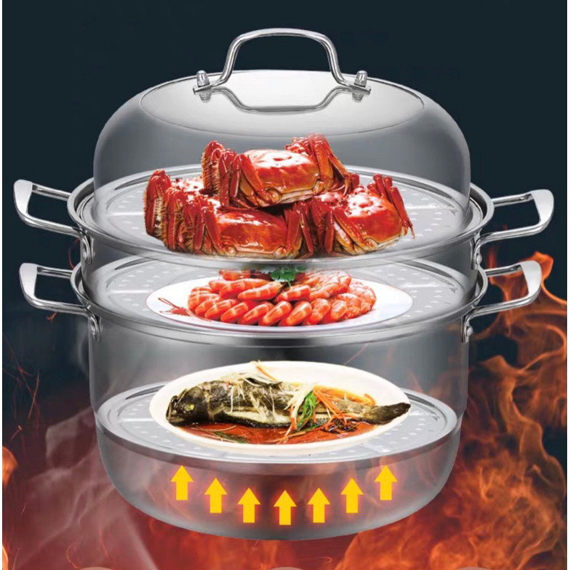 Panci Kukus Siomay Dimsum Bakpao Nasi Tim Steamer Dandang Stnlss Stll Susun 3 Ukuran 28cm