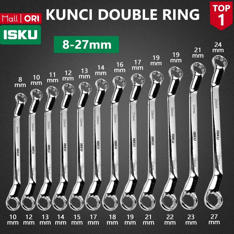 ISKU Set Kunci Ring Pas 8mm-27mm Alat Perkakas Tools Kunci Ring Pas/Kunci Ring set lengkap