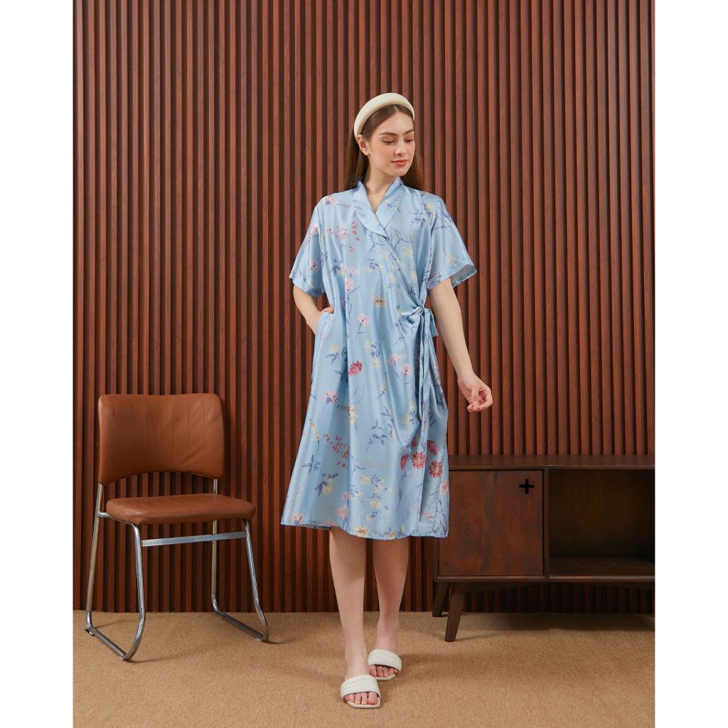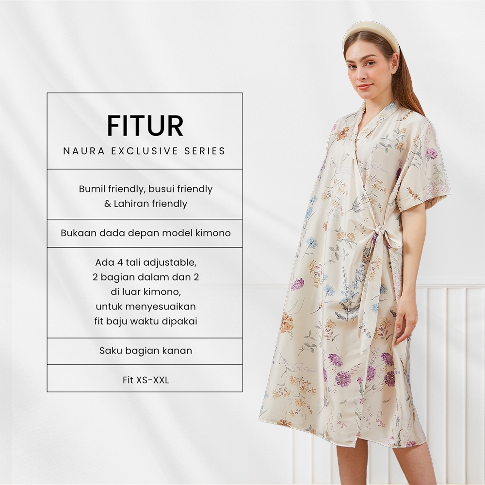 DYD LABEL Naura Dress Kimono Mini Exclusive Series Bahan Organic Silk Free Size Adjustable Bumil Busui Friendly Saku Kan