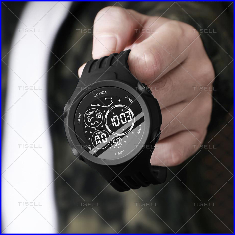 Tisell - Jam Tangan Pria Digital Rubber Led Waterproof Electronic Digital Sports Watch Tali Karet Gaya Fashion Simple Ca
