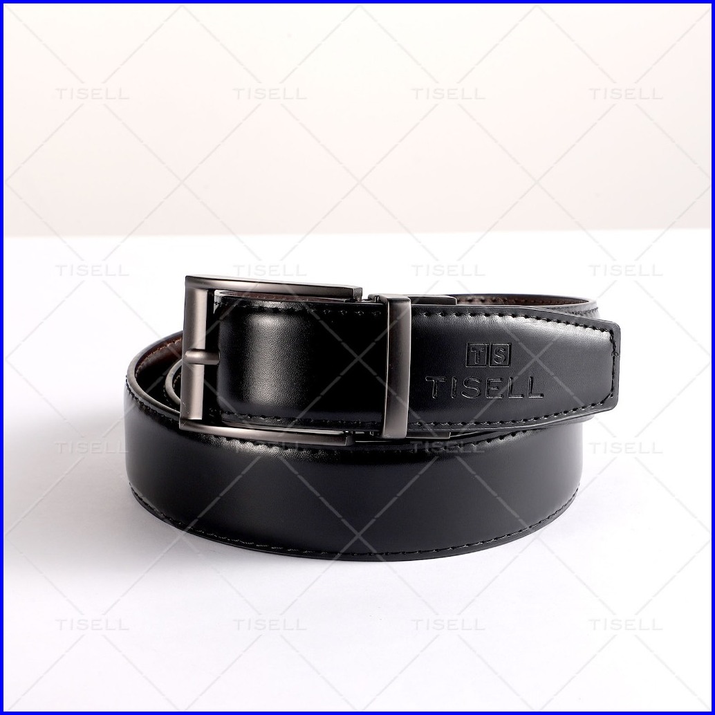 Tisell Ikat Pinggang Pria Bahan Kulit Pu Gesper Cowok Hitam Model Tusuk