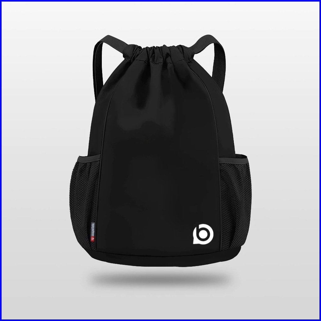 Bleesed - Drawstring Bag Pria Wanita Unisek Stringbag Sekolah Waterproof Tas Serut Hitam Bahan Cordura