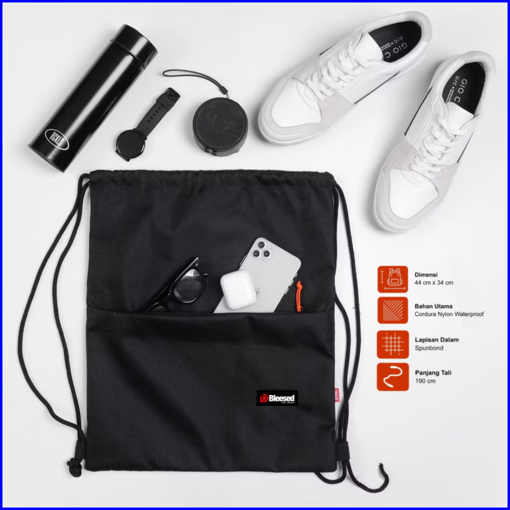 Bleesed Tas Serut Gendong Terbaru Stringbag Hitam Pria Wanita Unisek Serbaguna Waterproof Adventure