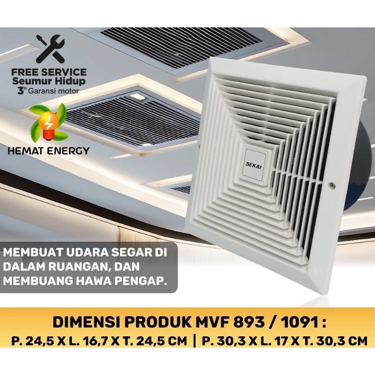 Ducting Exhaust Fan Plafon Ceiling Sekai Penyedot Hexos WC Toilet 8 10 12 Inch MVF 893 MVF 1091 1293