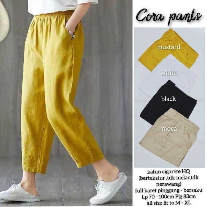 Cora Baggy Pants Linen / Celana Plain Boyfriend Harem Slim Panjang Wanita Bahan Katun Linen Original