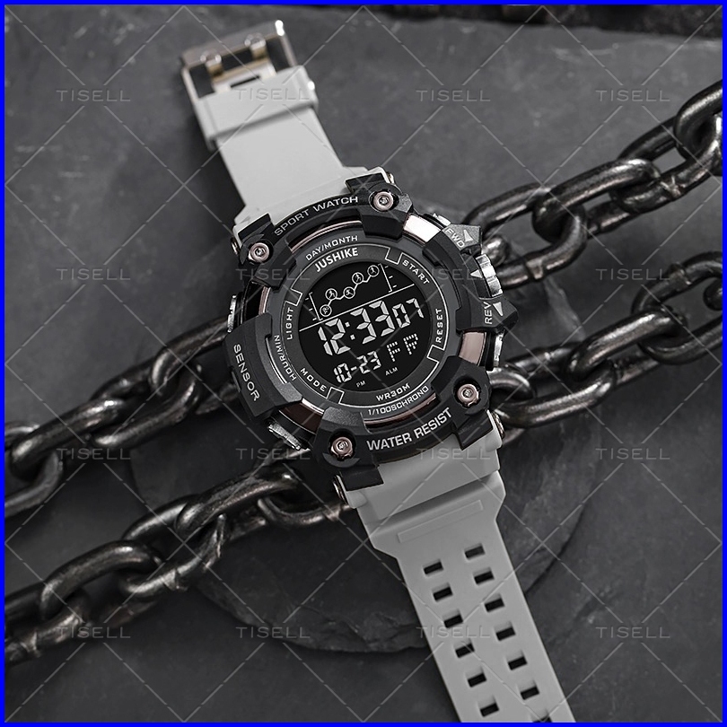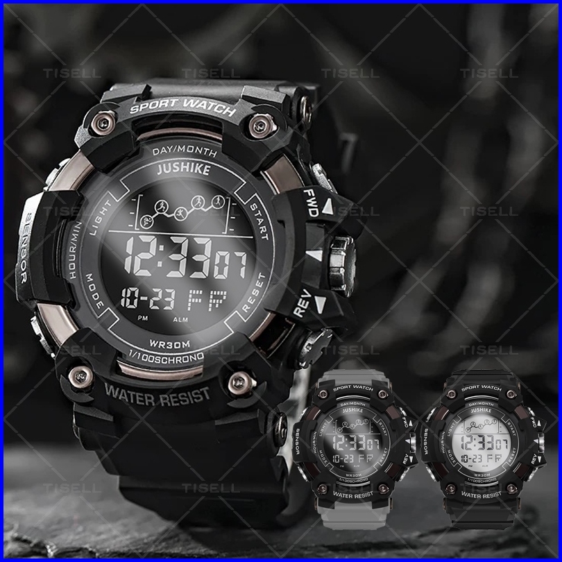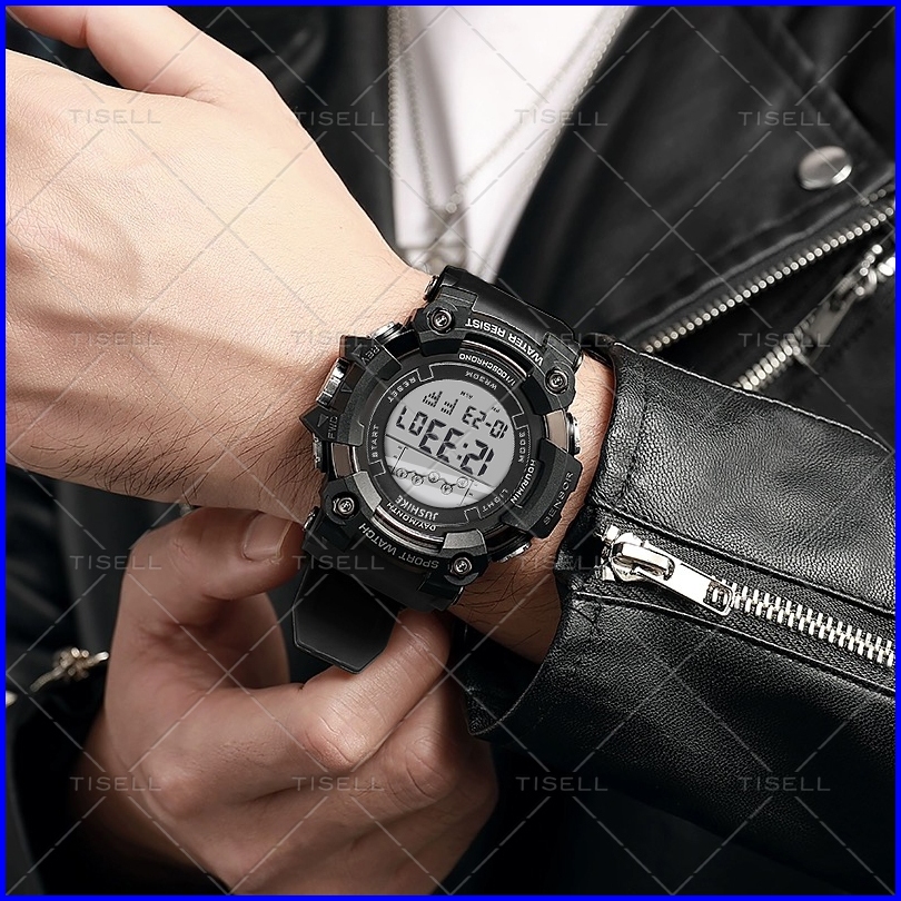 Tisell - Jam Tangan Pria Digital Led Rubber Sport Watch Auto Date Alarm Display Timing Electronic Smart Watch