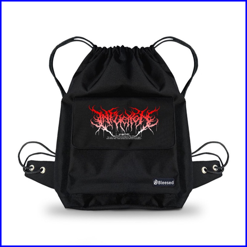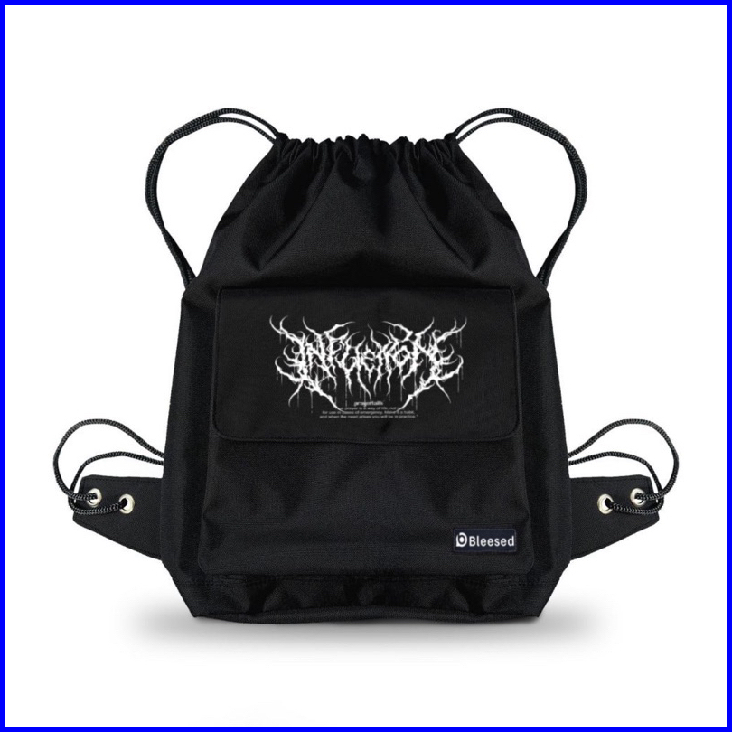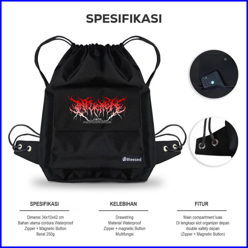 Bleesed - Tas Tali Serut Magnetic Button Metal Hitam Putih - Stringbag Multipungsi Serbaguna Pria Wanita