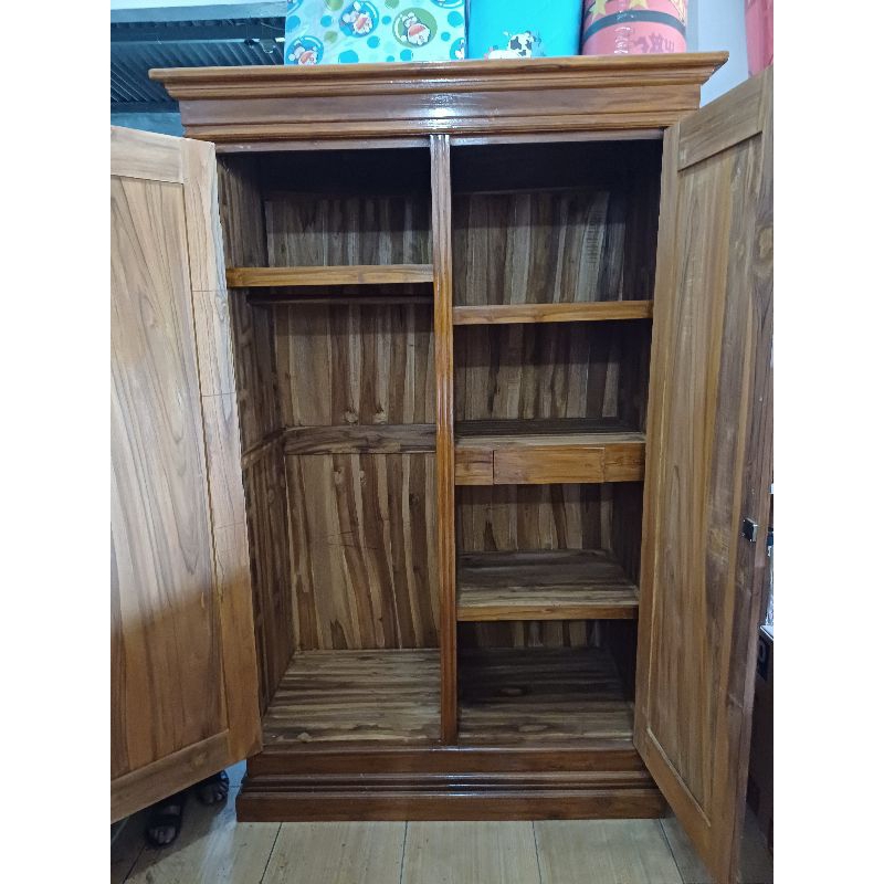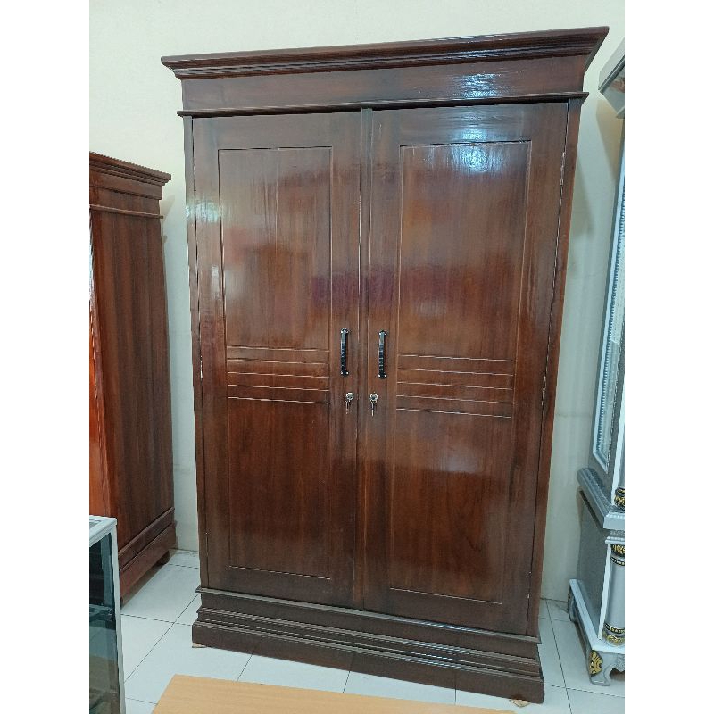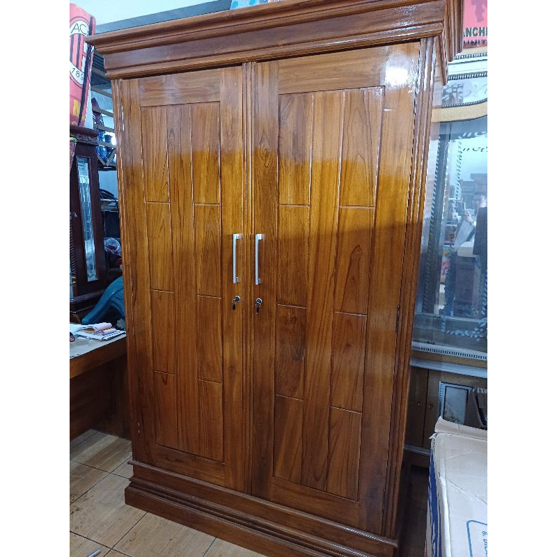 Lemari Jati 2 Pintu minimalis Asli Jepara Lemari Pakaian Jumbo kayu Jati Finishing Plistur - Terlaris Free Ongkir