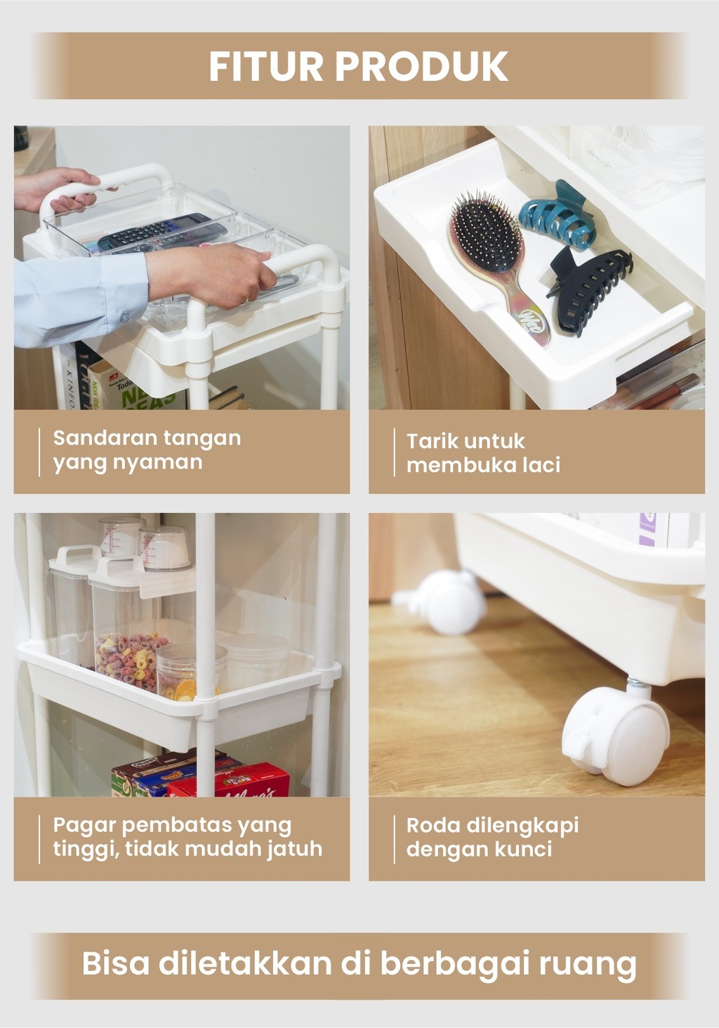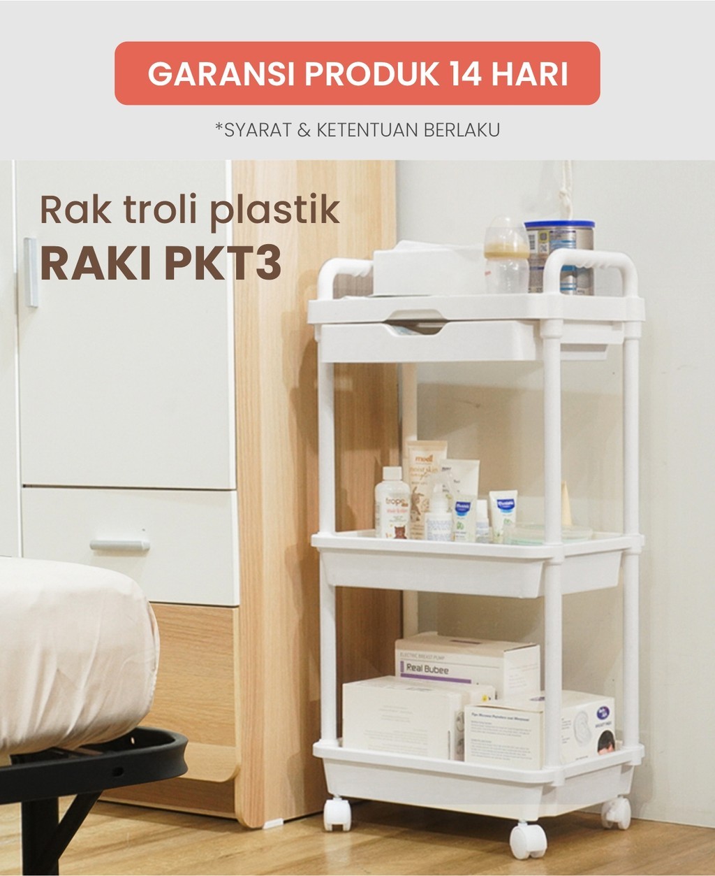 PIRA - RAKI PKT3 Rak Troli 3 Susun / Rak Plastik Serbaguna dengan Laci tersembunyi dan Roda