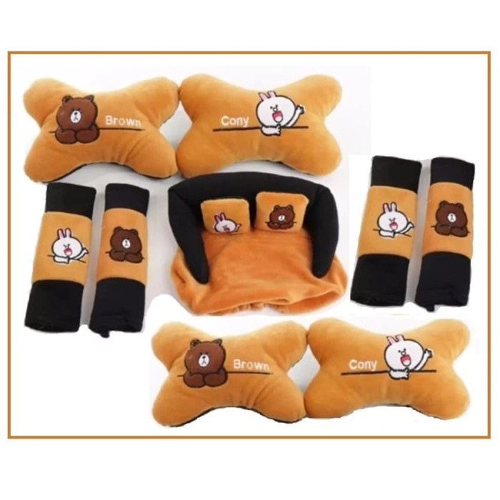 Paket Hemat Set Bantal Mobil / Bantal Leher Mobil / Bantal beruang Coklat Bantal Leher Lucu