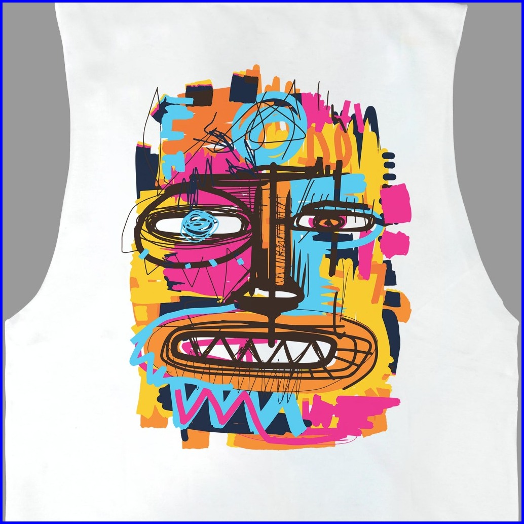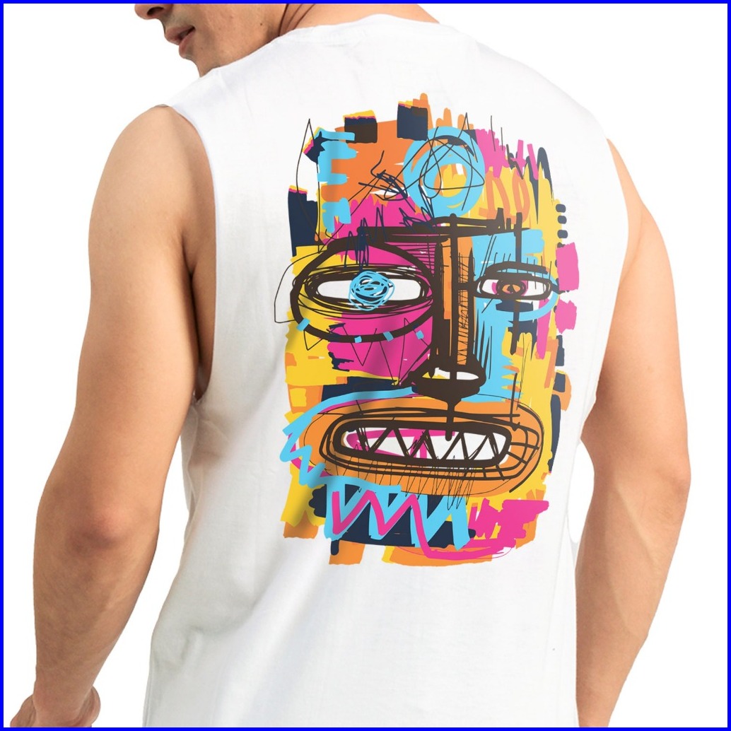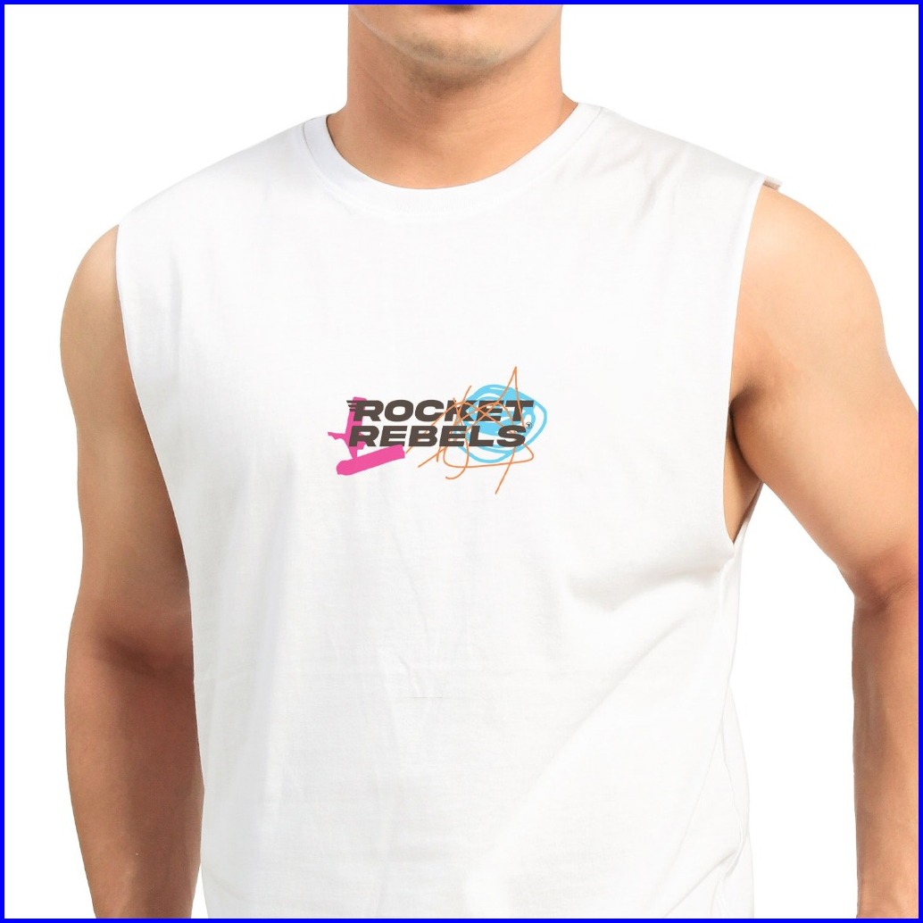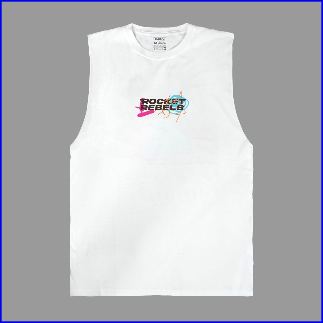 Rocketrebels Sleeveless T-shirt Cotton Bamboo Tanktop White Abstrak Art Menyerap Keringat Dan Nyaman