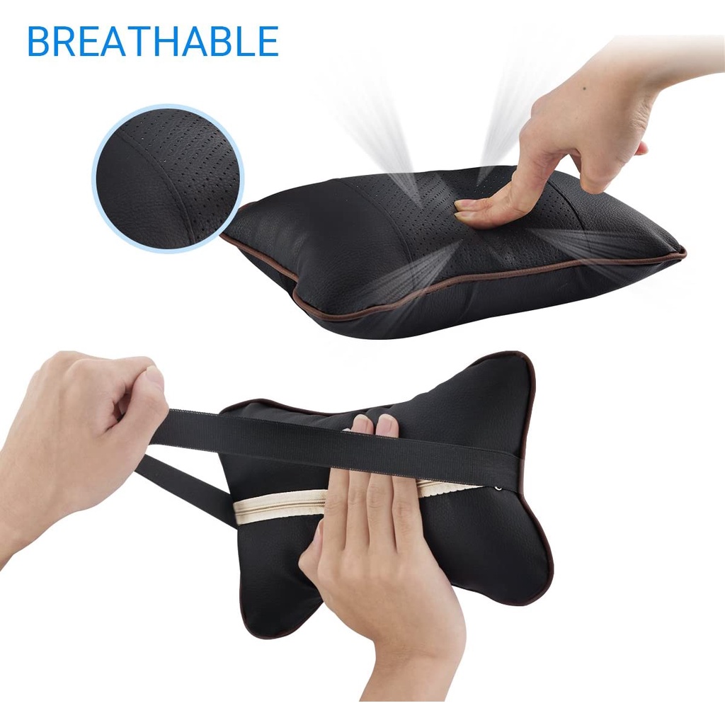 Bantal Mobil Headrest Bantal Leher Leather Neck Back Car Pillow Car 2 Pcs