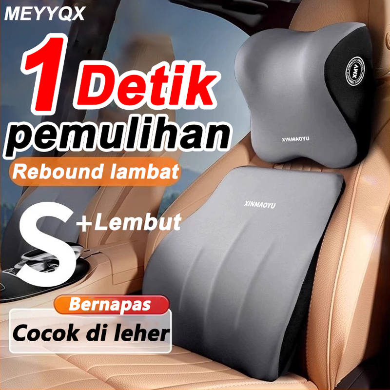 Bantal Mobil SandaranLeher Hitam / abu-abu Bantal Sandaran Punggung Memory Foam Neck Pillow Headrest Mobil Bantal Leher