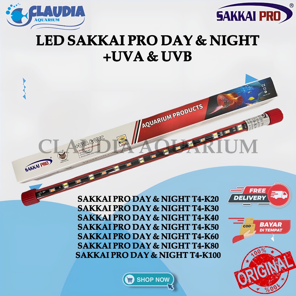 Lampu Celup LED Aquarium SAKKAI PRO T4 DAY AND NIGHT UVA & UVB 20 30 40 50 60 80 100 cm T4 T200 T300 T400 T500 T600 T800
