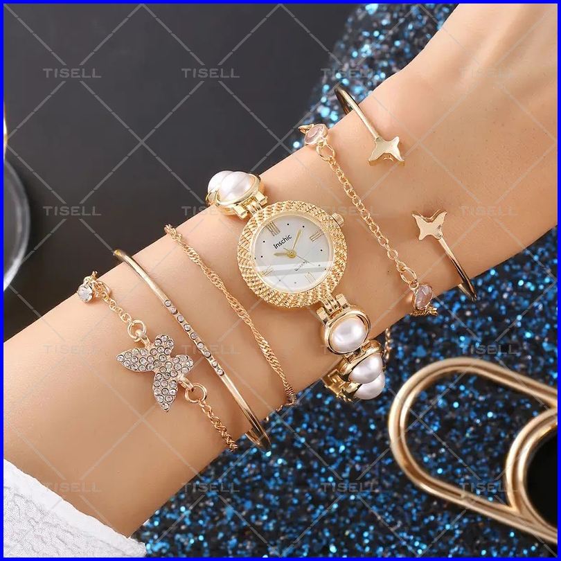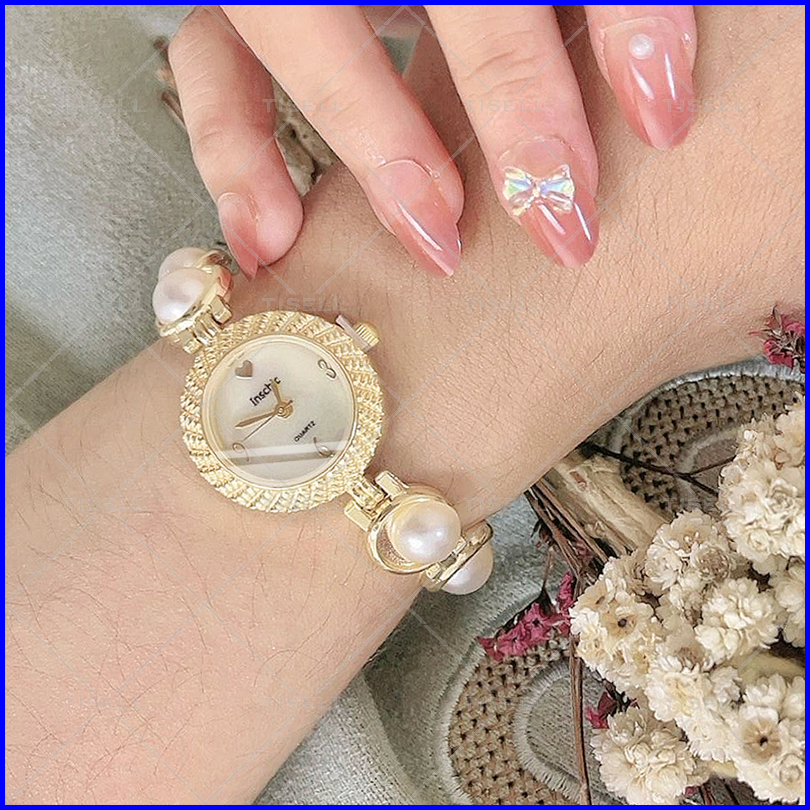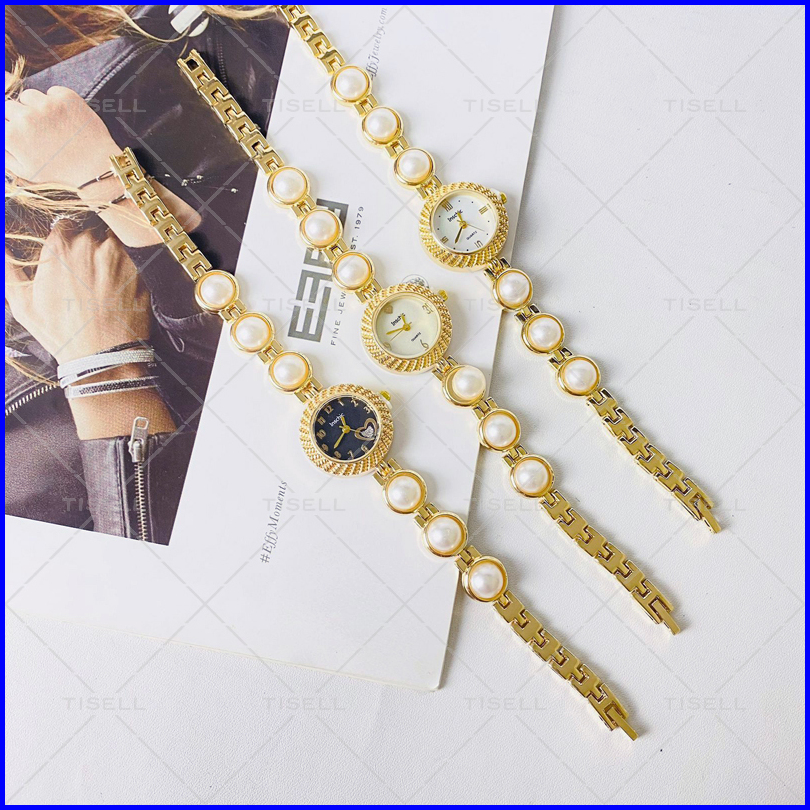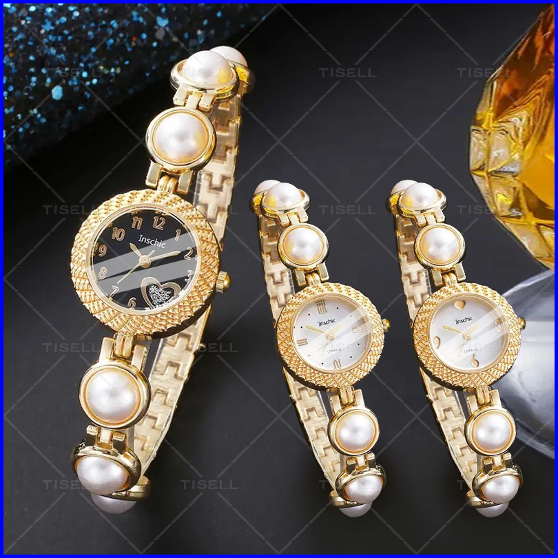 Tisell - Jam Tangan Wanita Anti Air Tali Rantai Stainless Steel Aksen Mutiara Mewah Cantik Kualitas Terbaik Bracelet Ana