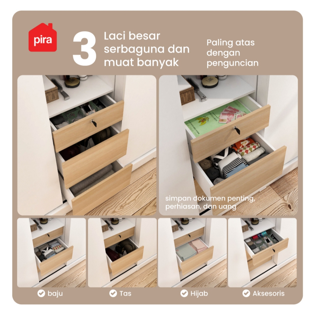 Lemari Pakaian Pintu Sliding dengan Meja Rias PIRA METROPOLIS - BAKU WDSL160 DS Gratis Ongkir