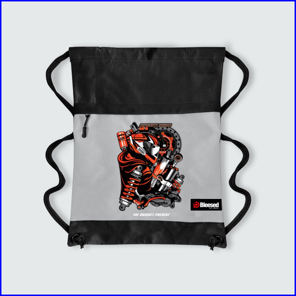Bleesed X Tas Serut Combi Hitam Abu Pria Wanita Unisex Drawstringbag Sepatu Multipungsi