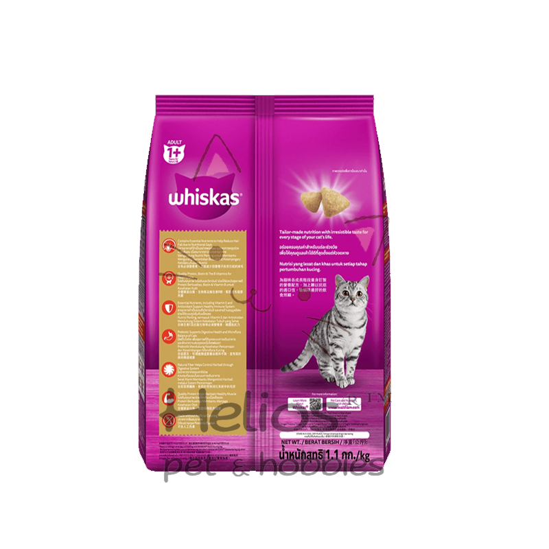 Whiskas Dry Adult Cat Food 1+ Skin & Coat Makanan Kering Kucing Dewasa Freshpack 450g