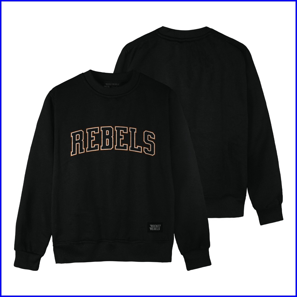 Rocketrebels Crewneck Black Rebels Cotton Fleece Unisex Street Wear Rr.sw-03