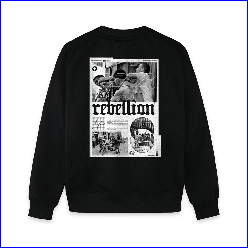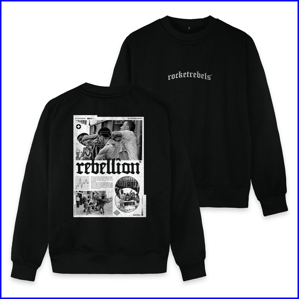 Rocketrebels Crewneck Black Rebellion Newspaper Cotton Fleece Unisex Street Wear Rsw-22