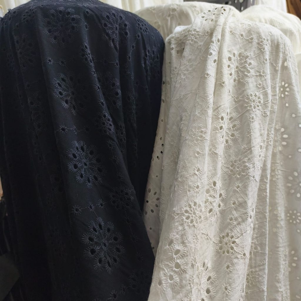 BAHAN KAIN KATUN RAYON BORDIR BOLONG HARGA UNTUK ½ METER