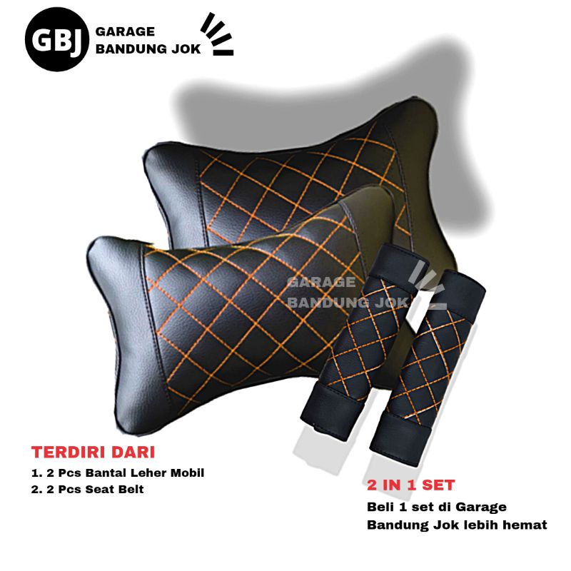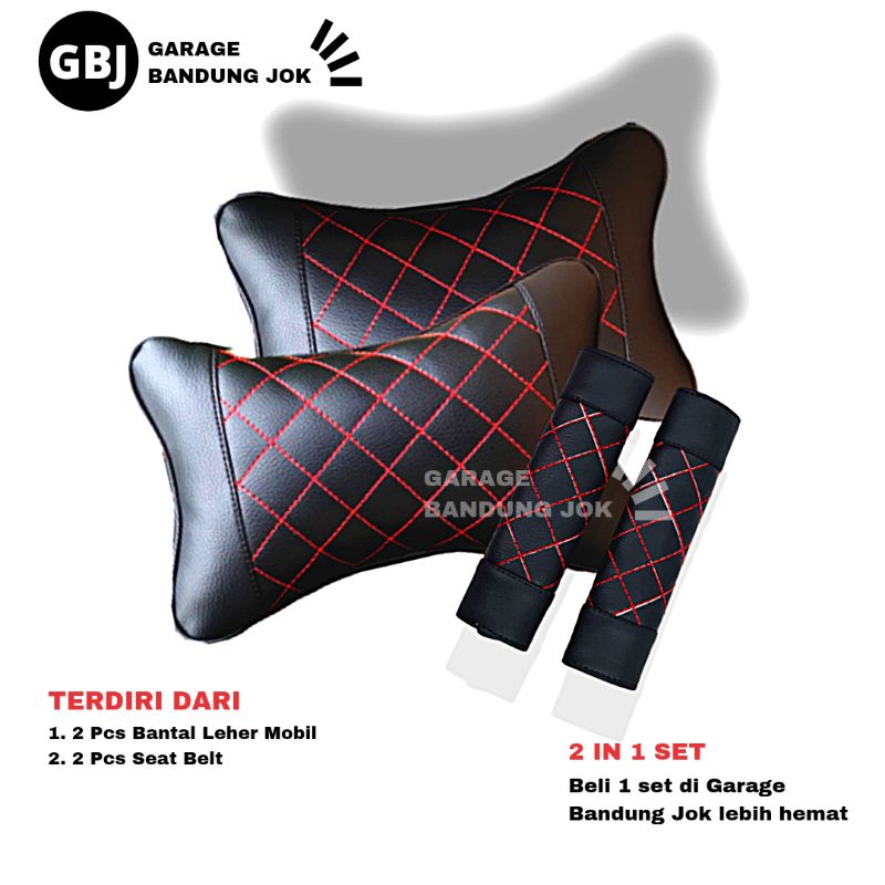 2 IN 1 Set Bantal mobil black series | Headrest bantalan kepala mobil kulit | Kotak tempat Tissue mobil seat belt berkua