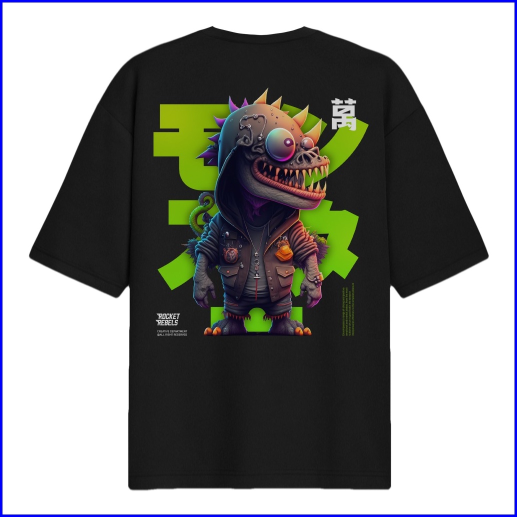 Rocketrebels Oversized T-shirt Cotton The Green Monster Streetwear Unisex Rebellion For Life
