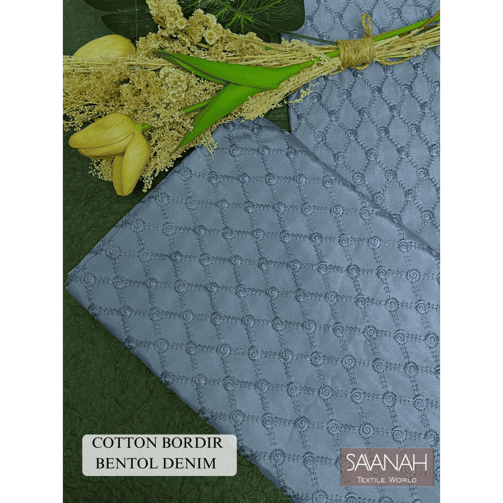 0,5 meter Kain KATUN COTTON PARIS BORDIR BUNGA BESARKATBOL untuk mukena