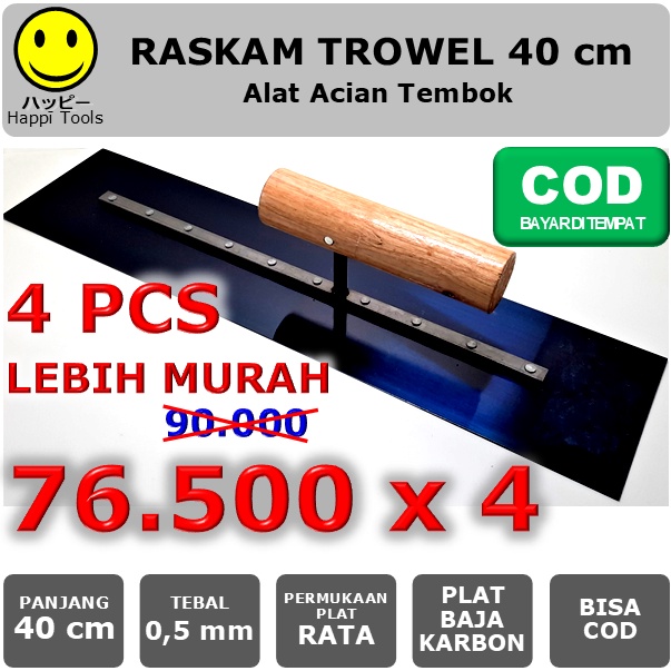 Raskam Roskam 40 cm Plat Baja Karbon Trowel Epoxy Alat Acian Tembok Finishing Plastering Beton