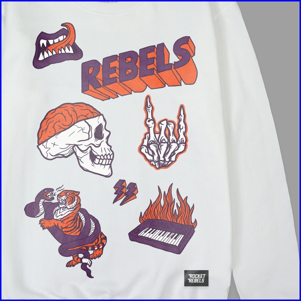Rocketrebels Crewneck Skull Rebellion Cotton Fleece Unisex Street Wear