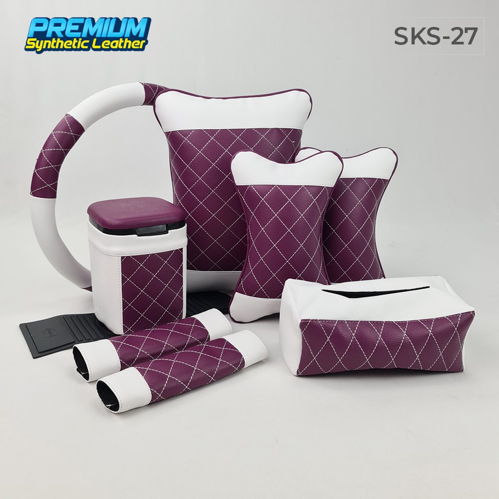 Set Bantal Mobil 5 in 1 plus Sarung Stir Mobil / Bantal Headrest Mobil