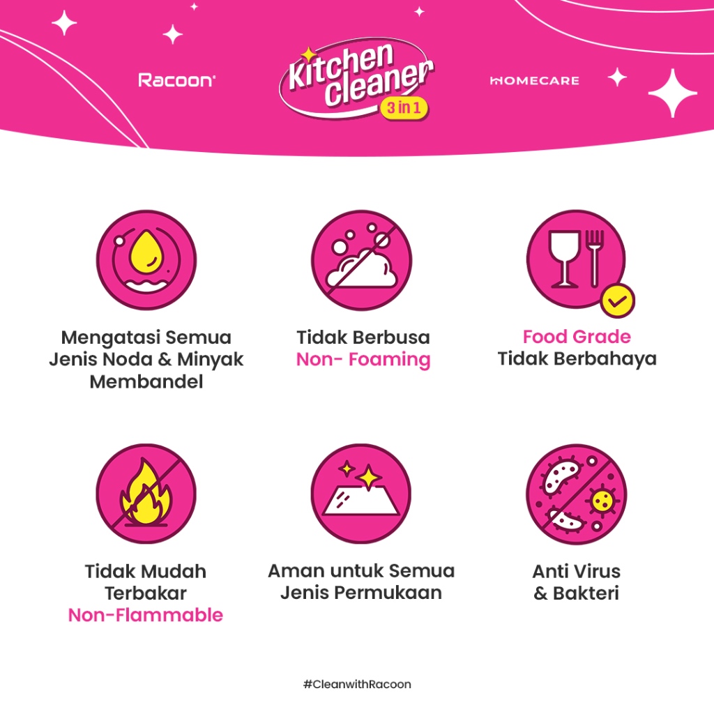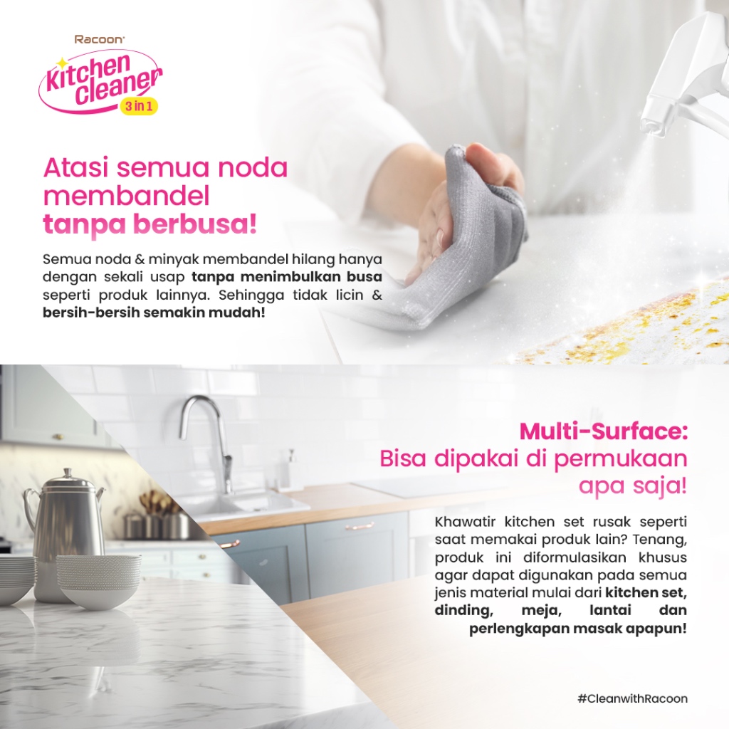 RACOON Spray Pembersih Dapur EXTRA 20 PERSEN 600ML | Tidak Berbusa | Food Grade | Racoon Kitchen Cleaner