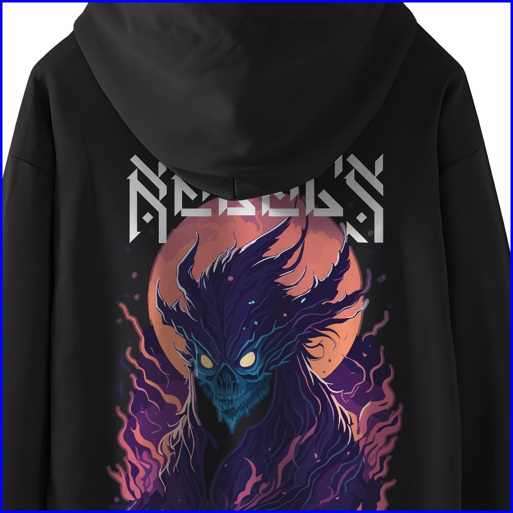 Rocketrebels Hoodie Fleece Black Rebels Moon Monster Design Unisex Street Wear