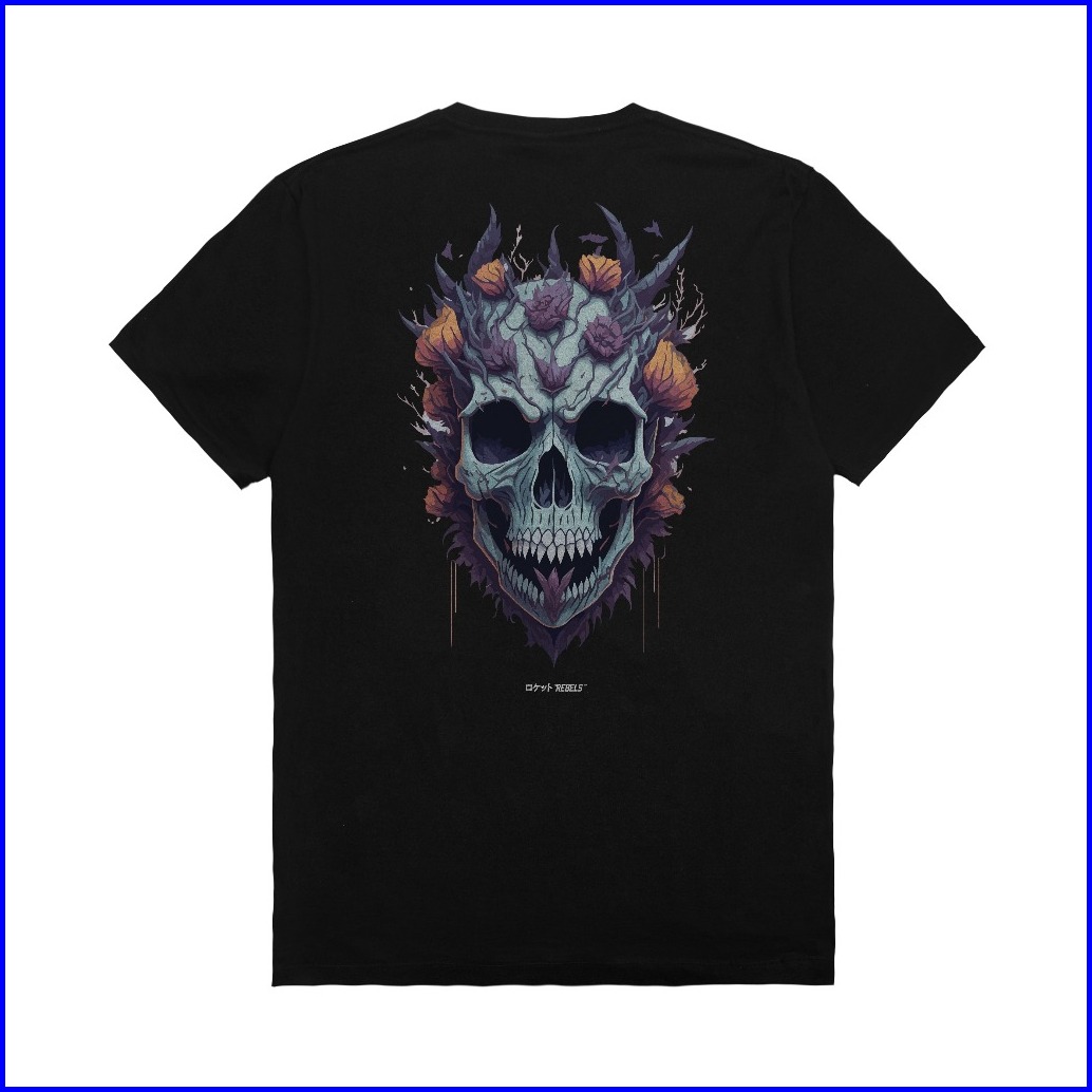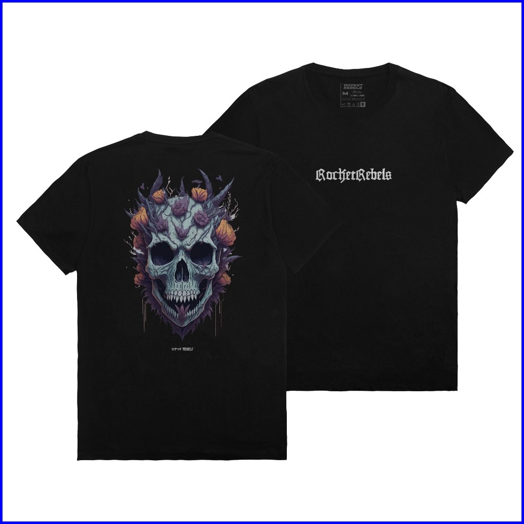 Rocketrebels T-shirt Black Original Streetwear Rebels Flowery Skull Rr-645