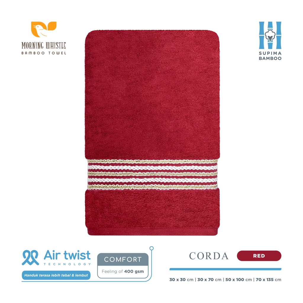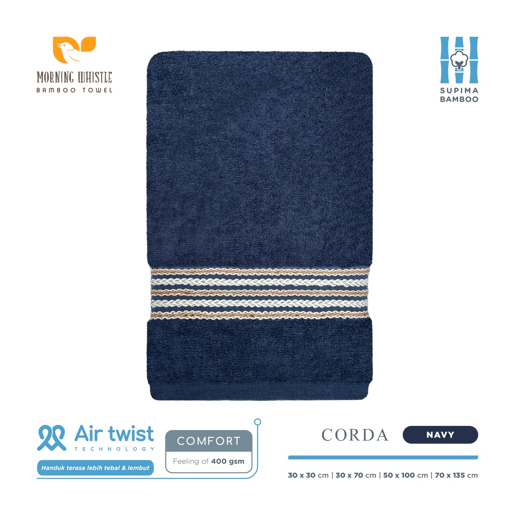 Handuk Morning Whistle Supima Bamboo Towel - Corda / Handuk Mandi Dewasa 70x135cm 50x100cm 30x70 cm 30x30cm