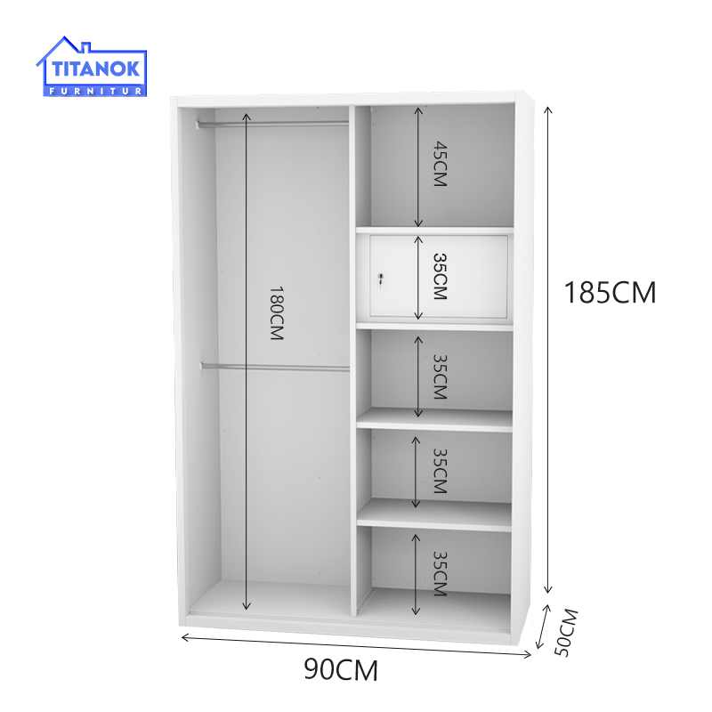 Lemari Pakaian Besi 2 Pintu Sliding Jumbo - 90cm 2 Batang Rak Baju Titanok Official Gratis Ongkir