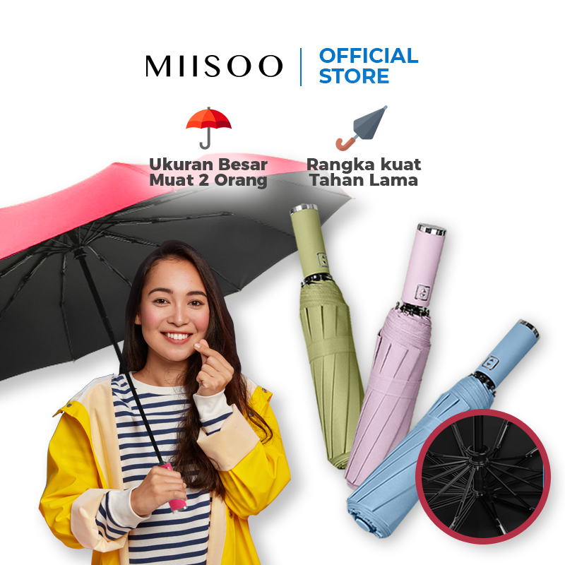 MIISOO Payung Lipat Umbrella Otomatis Polos Besar Anti UV Jumbo-live