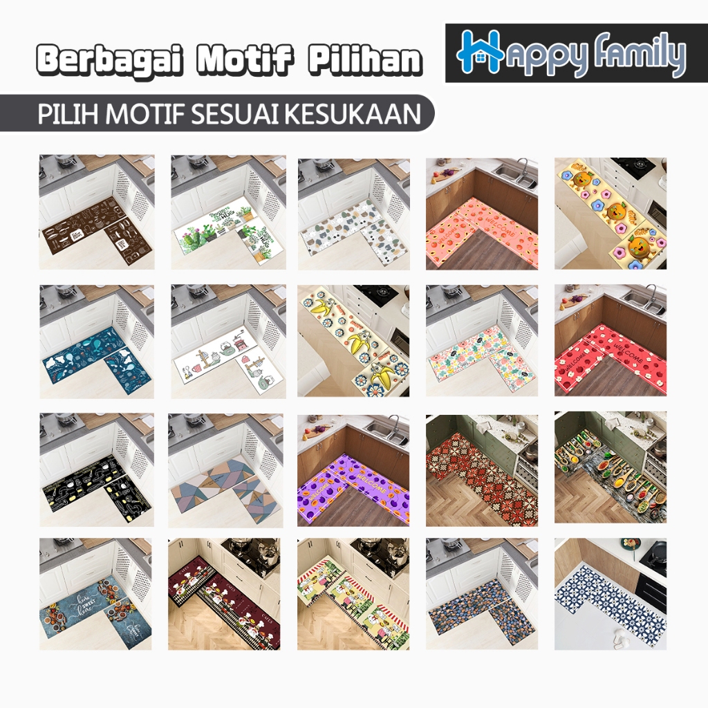 (HF) LOKAL Keset Lantai Dapur 2in1 Kitchen Floor Mat Set Anti Slip 40x60cm & 40x120cm Bahan Halus