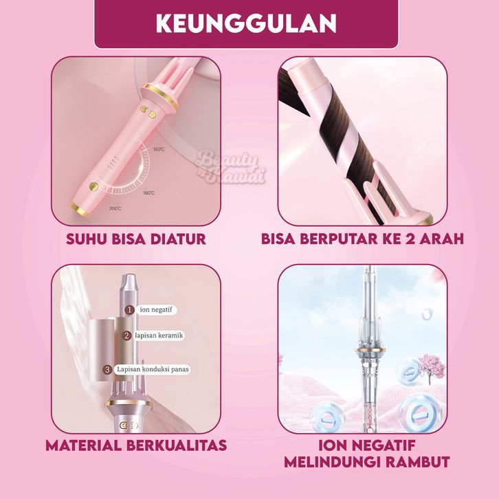 NEW Catok Curly Otomatis 28mm 3 Level Panas Styling Keriting Tahan Lama Ceramics Automatic Hair Curler agehg