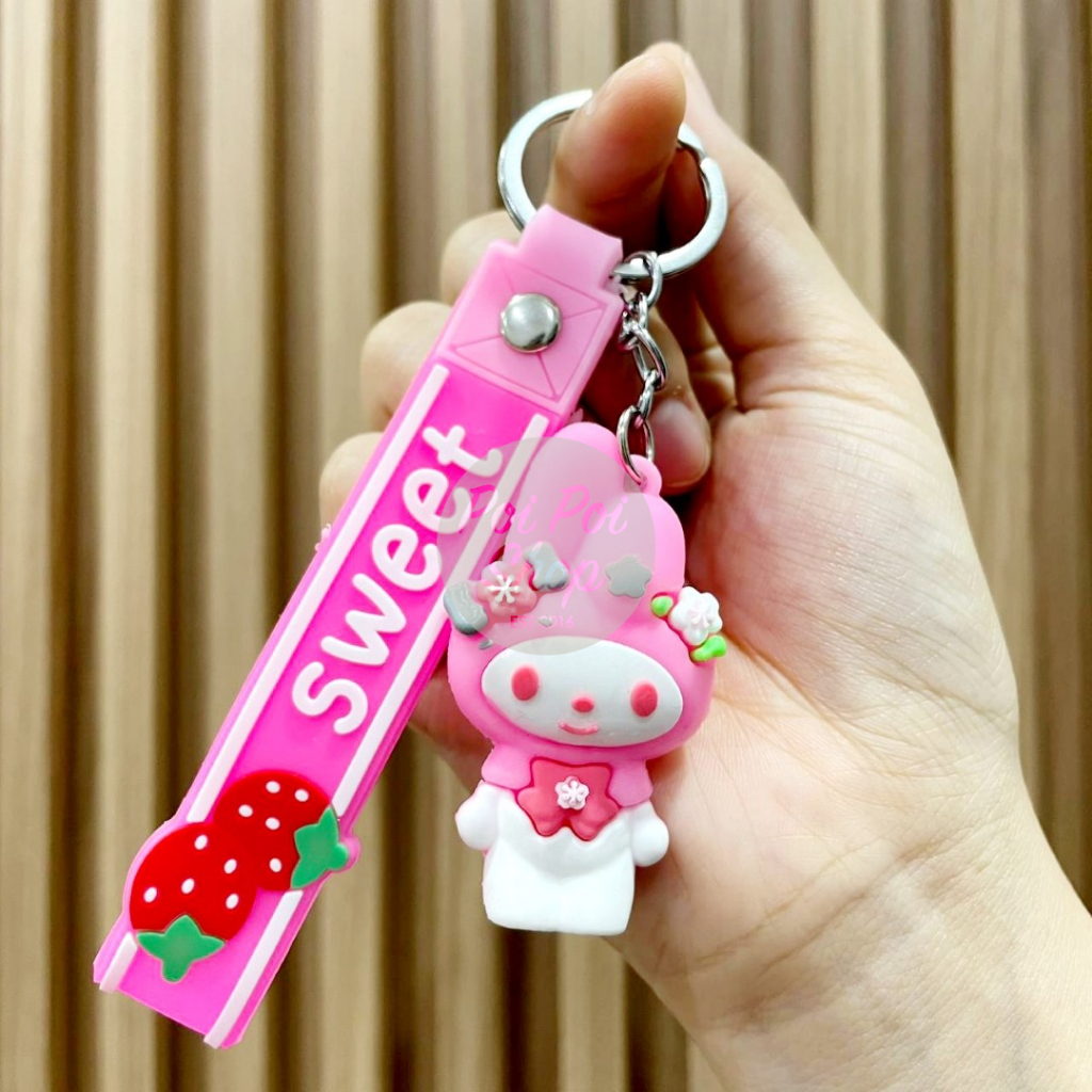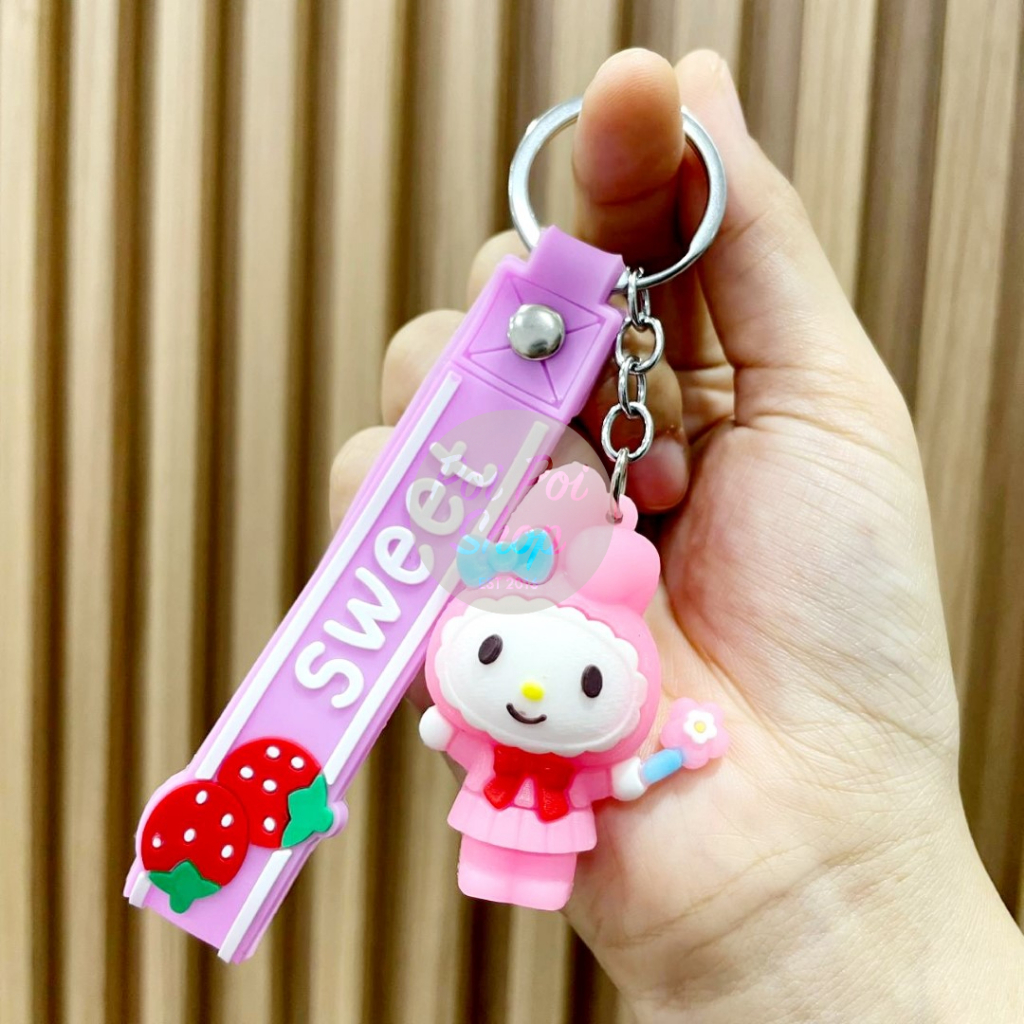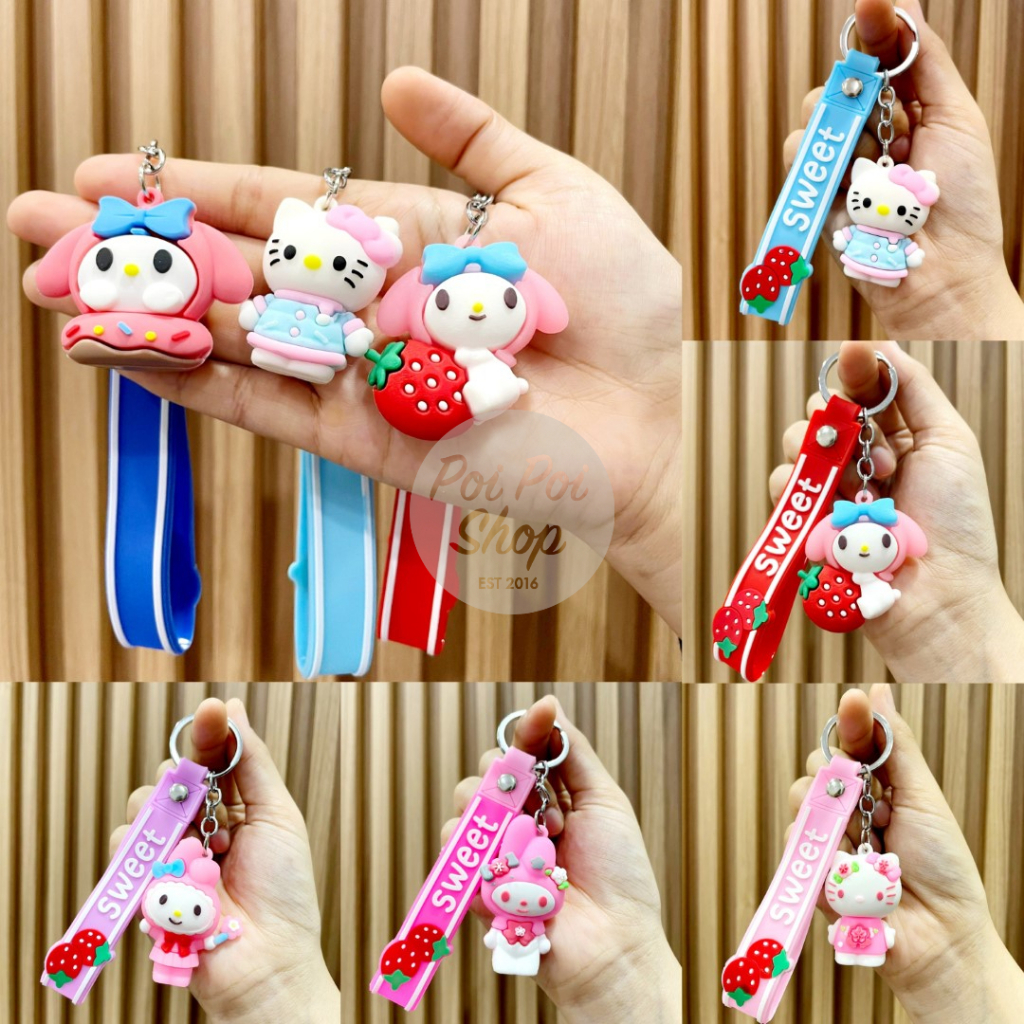 GANTUNGAN KUNCI Gantungan Kunci Melody Pink Hello Kitty Lucu Strawberry Ganci Keychain Lucu Kawaii Aksesoris Untuk Tas H