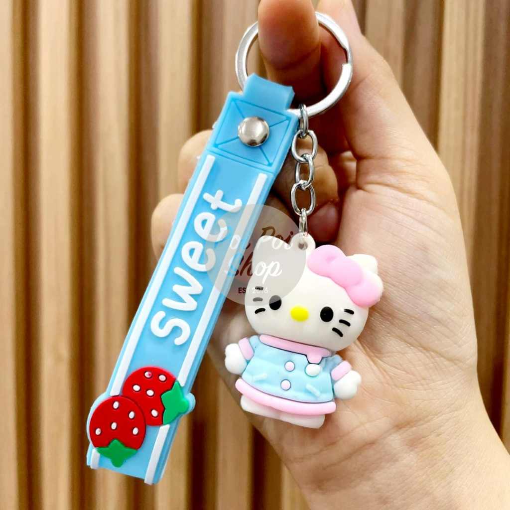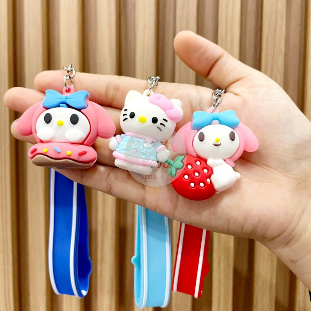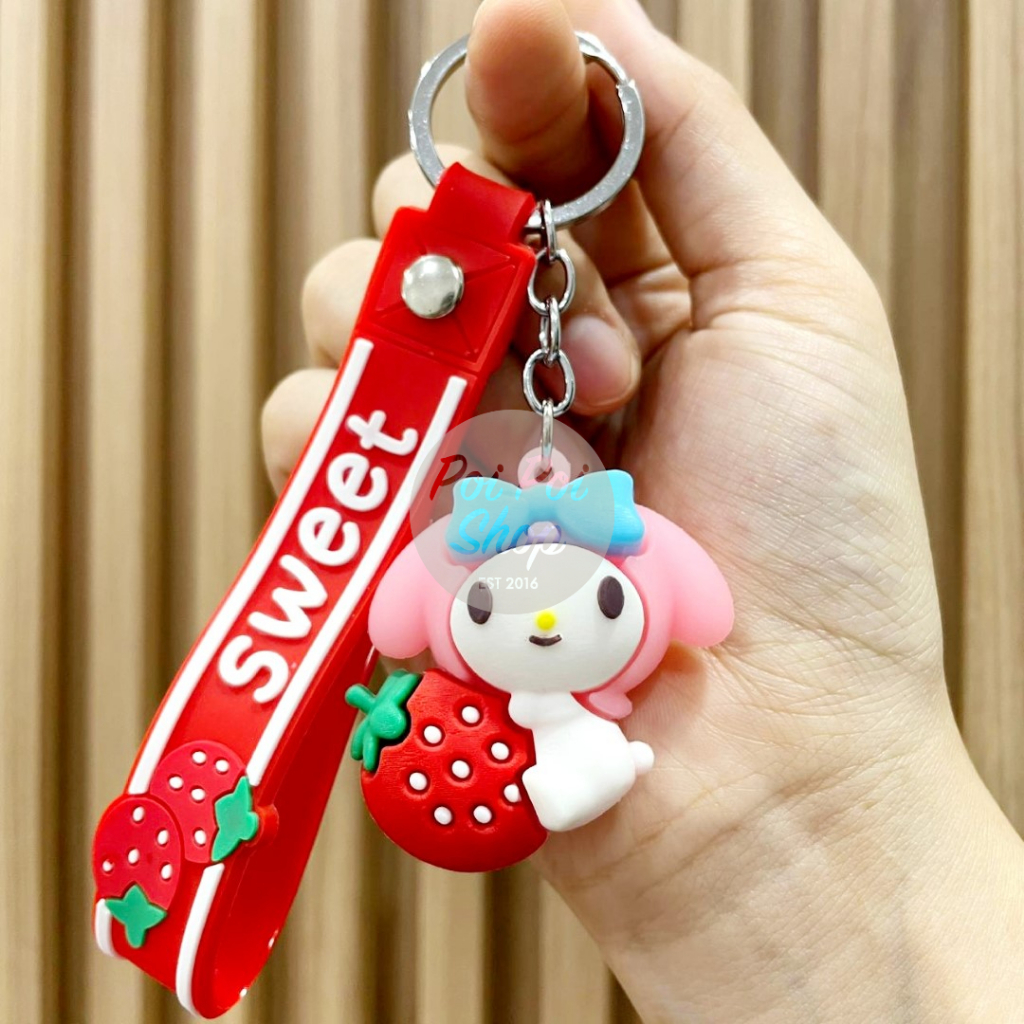 GANTUNGAN KUNCI Gantungan Kunci Melody Pink Hello Kitty Lucu Strawberry Ganci Keychain Lucu Kawaii Aksesoris Untuk Tas H