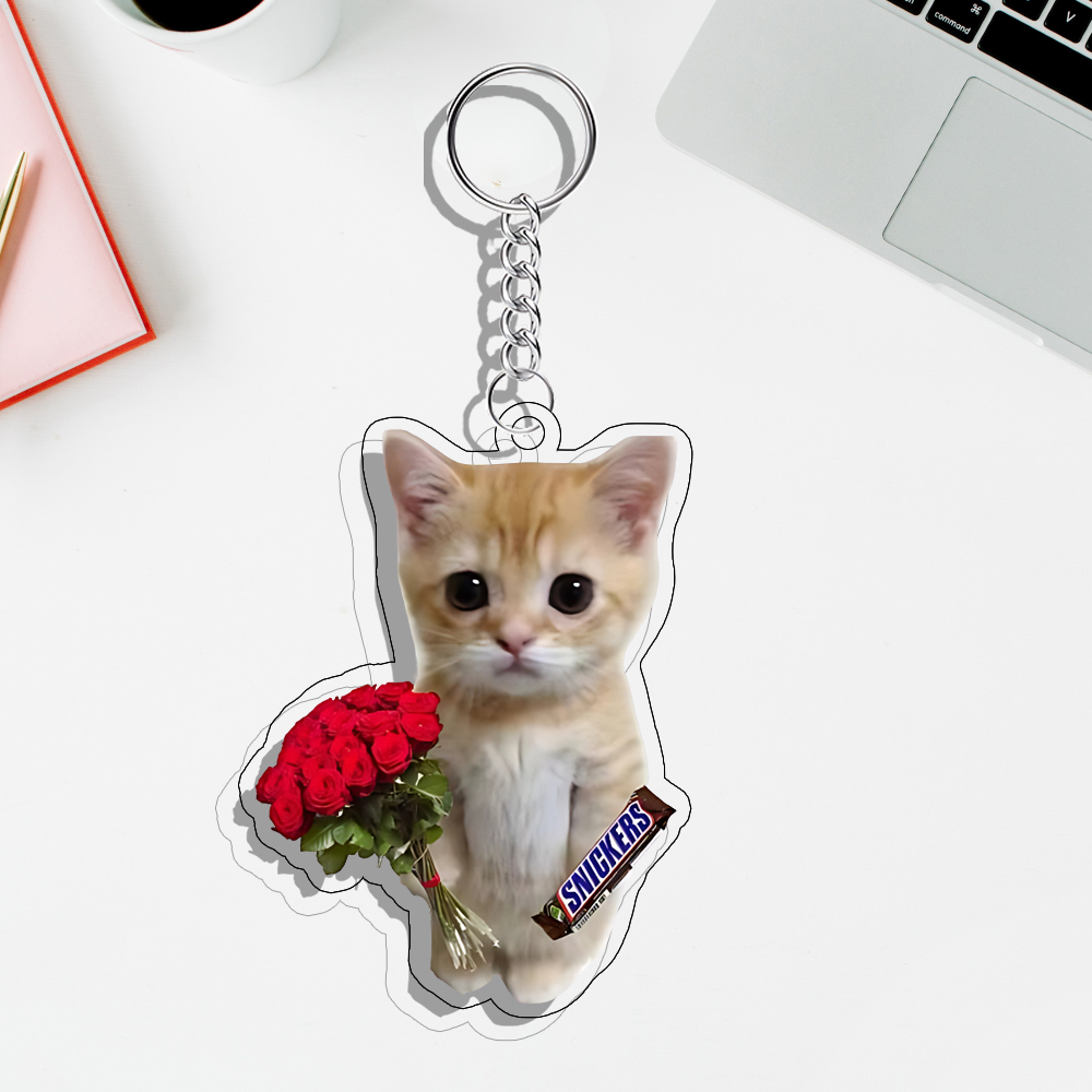 GANTUNGAN KUNCI Ganci MEME Cat Keychain | Gantungan Kunci MEME Kucing Akmal UV Printed 2 Sisi on 3MM rylic