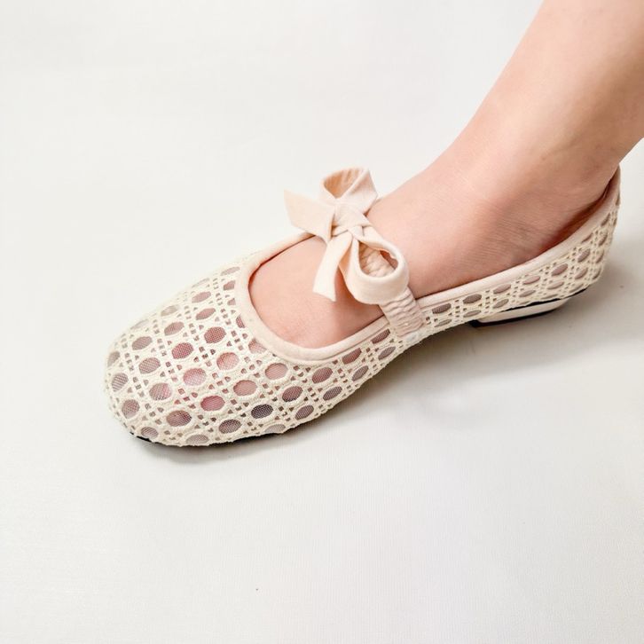 Flatshoes Wanita Model Jaring Variasi Tali Pita Empuk dan Nyaman
