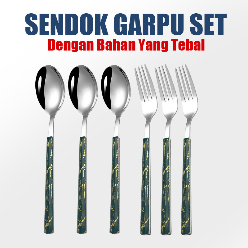 【12pcs】GYT Sendok makan tebal Sendok Garpu Set Marble Premium Superior Stainless Spoon 6pcs/4pcs