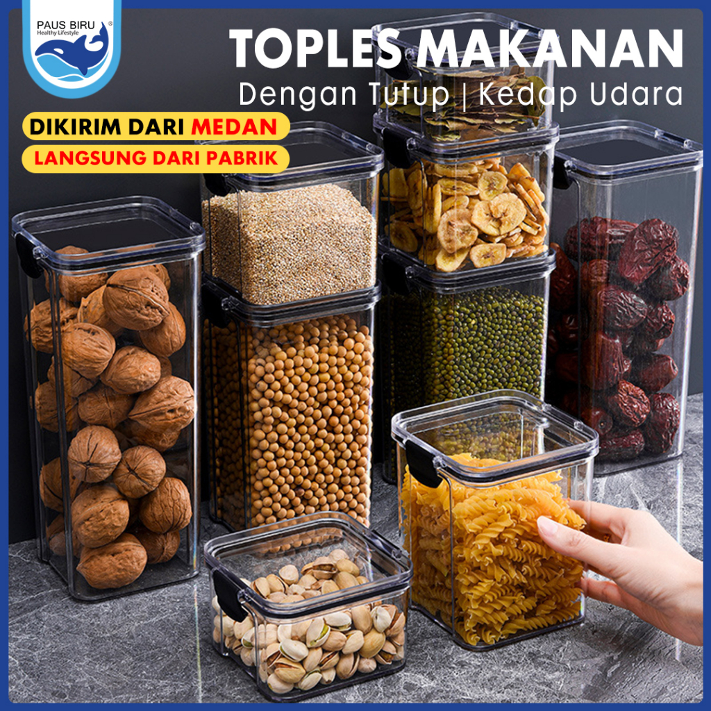 Paus Biru - Toples Kotak Snack Kedap Udara Penyimpanan Bening Cereal Kontainer Makanan Food Storage Jar Container