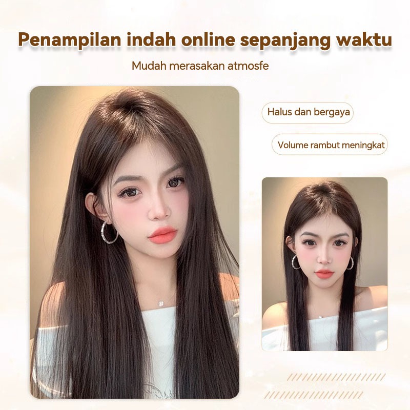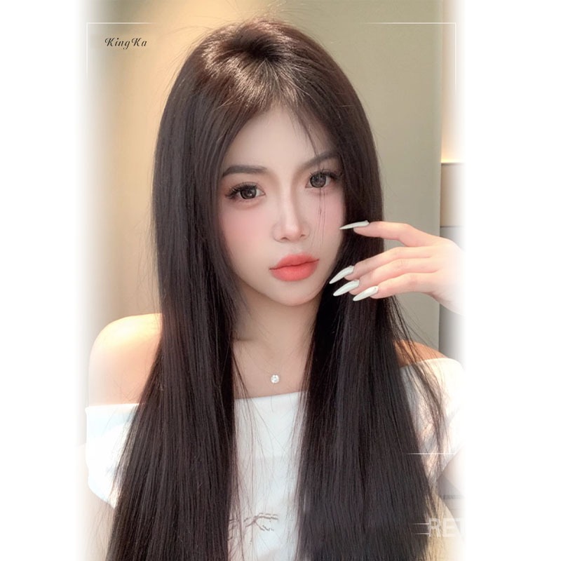 King Ka-Full Wig Korean Long Straight Tanpa Poni Rambut Palsu Wanita Lurus Natural Wig Wanita 60 cm