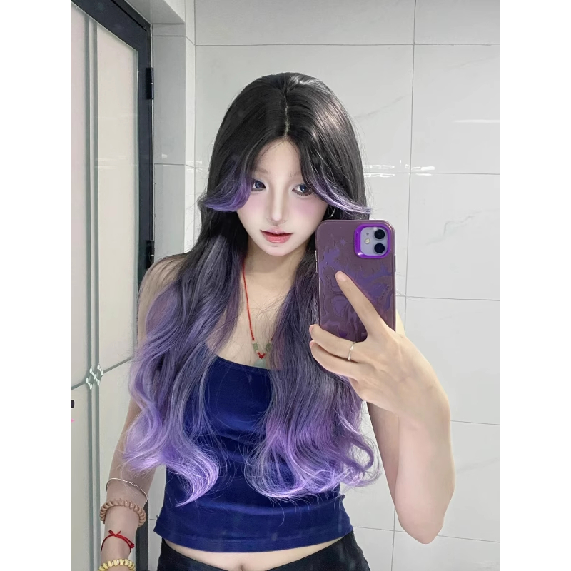 Wig Wanita Kupu-kupu Paris wig wanita rambut panjang curly wanita ombre wig wanita full kepala 65CM Wig Wanita Gradien Y