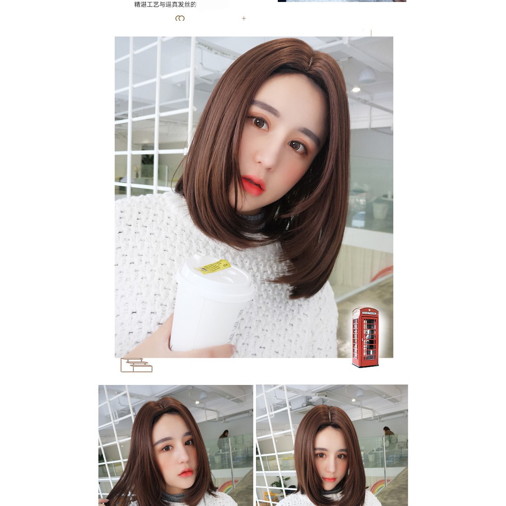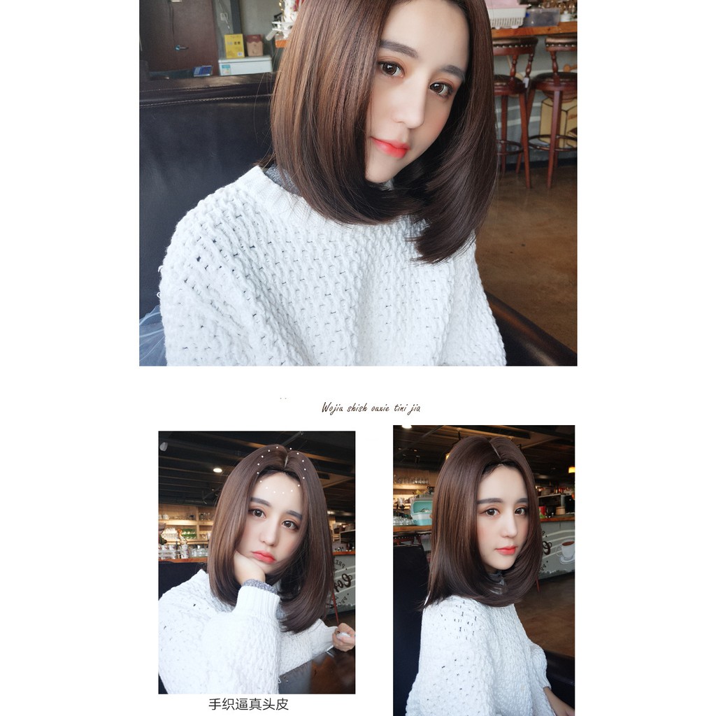 ZFPP - Rambut Palsu Wanita Sebahu Poni Belah Tengah Wig Wanita Pendek Lurus Bisa Dicatok Tahan Lama