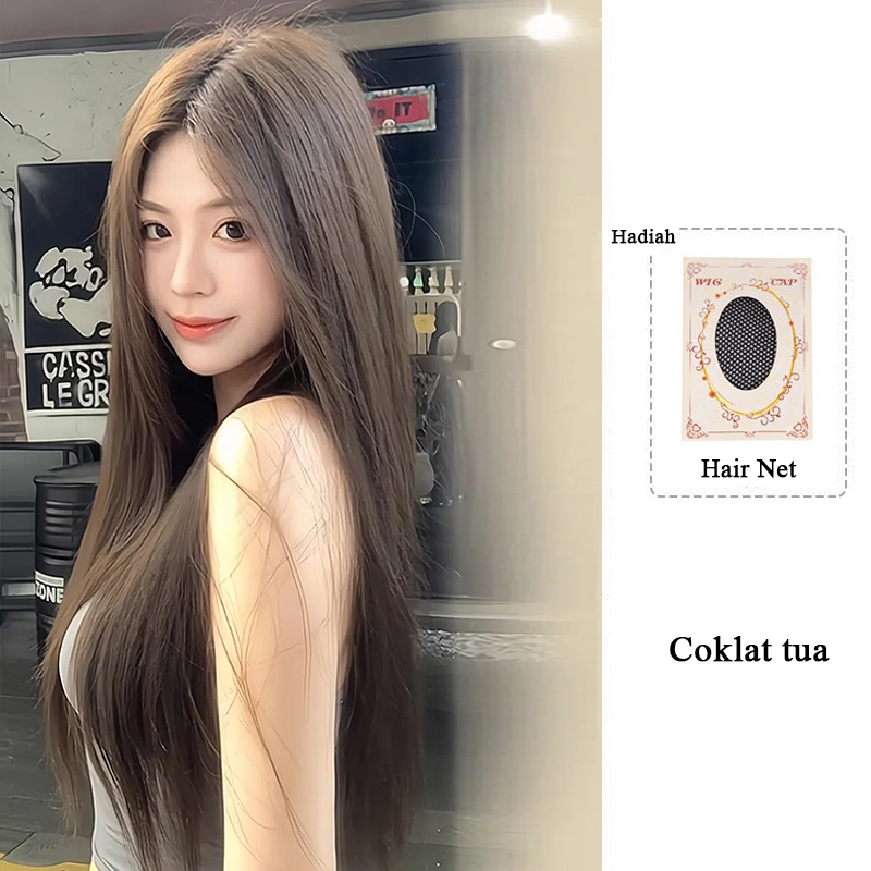 Wig Lurus Wig wanita full kepala Wig daily Wig bebas belahan Wig rambut panjang Wig korean style Wig natural wanita Ra