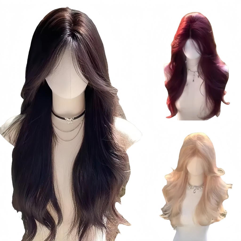 Wig wanita full kepala wig rambut panjang curly wig panjang raspberry merah 60cm rambut panjang wanita wig curly rambut